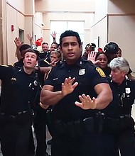 The Rev. Ernest Blue Jr. shows the umbrella and baseball cap he received from Morning Star Baptist Church’s pastor after preaching a guest sermon on … Published on July 13, 2018 |