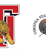 Virginia State University running back Trenton Cannon goes airborne with the ball for a big gain last Saturday against Virginia Union University at Hovey Field … Published on November 12, 2016 |